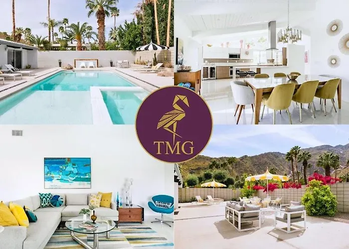 Tijdens hun verblijf in deze 4-slaapkamer Villa Reel Paradise - Mid Century House Palm Springs kunnen gasten genieten van een bubbelbad en een overdekt zwembad of een bezoek brengen aan de Palm Springs Walk of Stars, op 25 minuten lopen ervandaan. Deze villa in de Downtown Palm Springs wijk biedt mogelijkheden om wandelen, paardrijden en bowlen in de omgeving, op 2 km van het Ruth Hardy Park.
